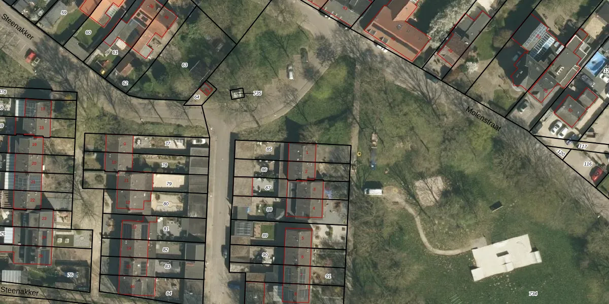 Gebruik de zoekbalk of klik op een perceel voor informatie over de adressen binnen dit perceel.