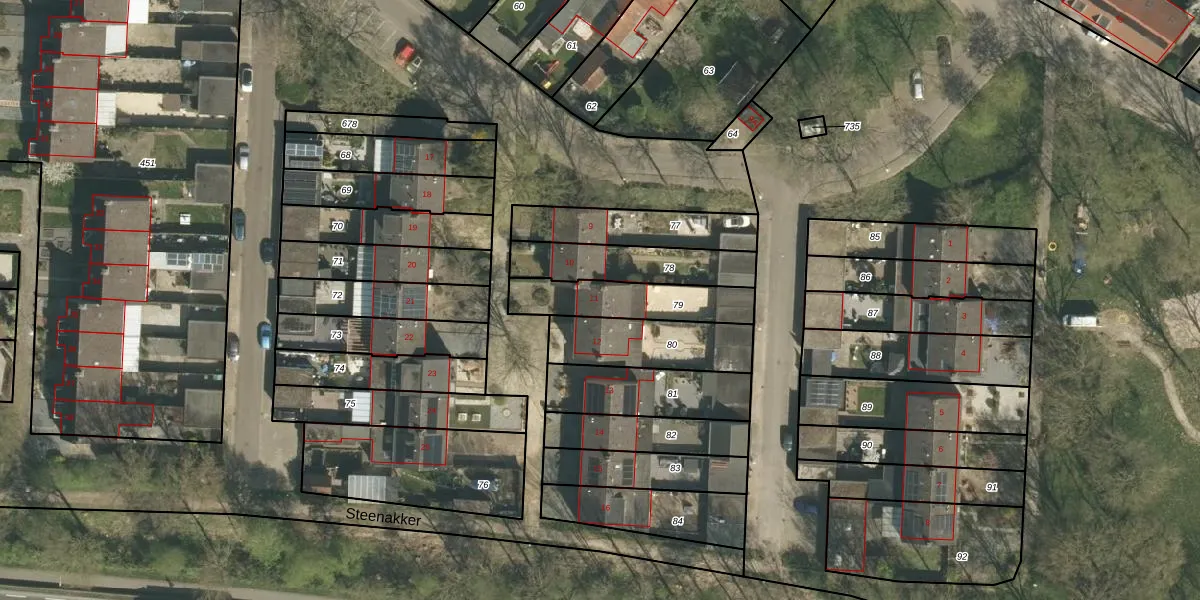 Gebruik de zoekbalk of klik op een perceel voor informatie over de adressen binnen dit perceel.