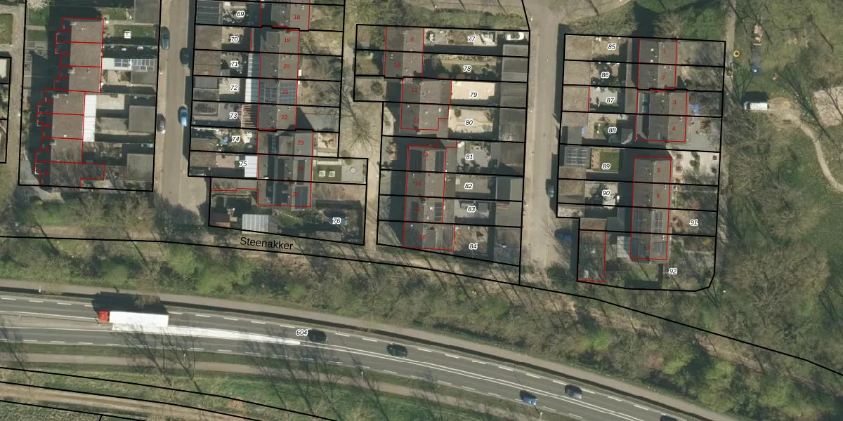 Gebruik de zoekbalk of klik op een perceel voor informatie over de adressen binnen dit perceel.