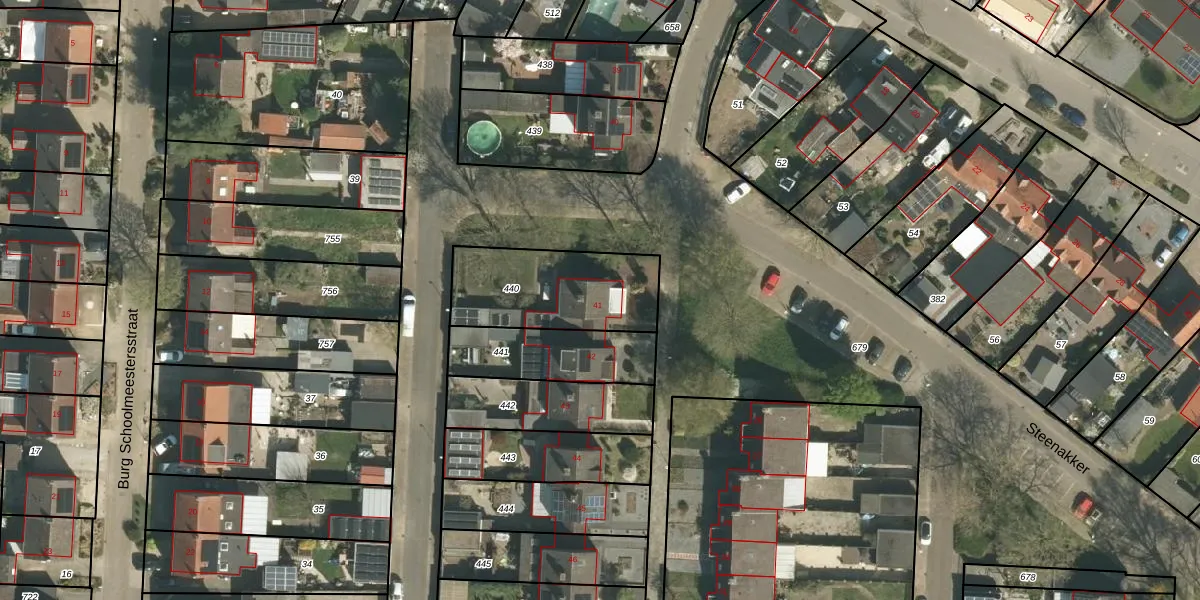 Gebruik de zoekbalk of klik op een perceel voor informatie over de adressen binnen dit perceel.