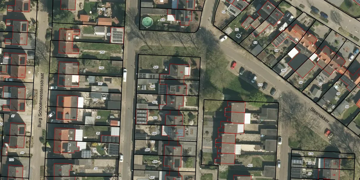 Gebruik de zoekbalk of klik op een perceel voor informatie over de adressen binnen dit perceel.