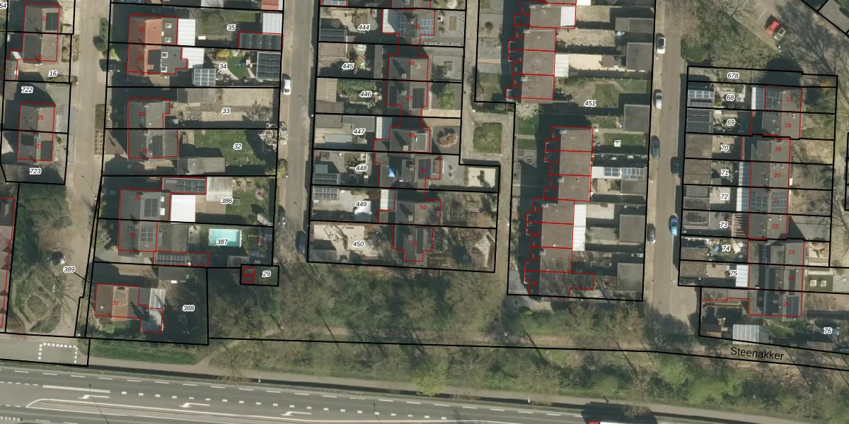 Gebruik de zoekbalk of klik op een perceel voor informatie over de adressen binnen dit perceel.