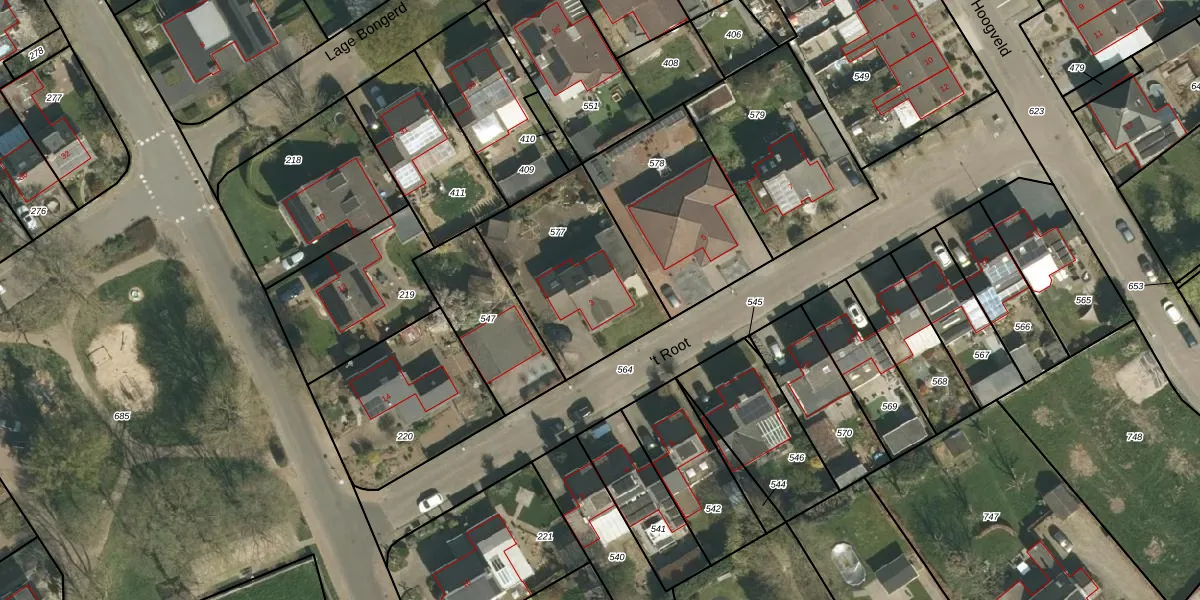 Gebruik de zoekbalk of klik op een perceel voor informatie over de adressen binnen dit perceel.