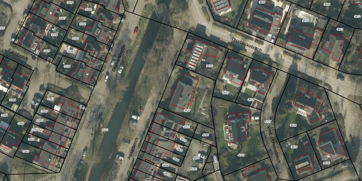 Gebruik de zoekbalk of klik op een perceel voor informatie over de adressen binnen dit perceel.