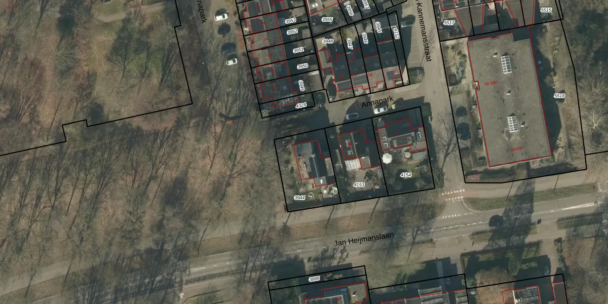 Het perceel waarop Annapark 17 staat heeft een oppervlakte van 433 m². Dit is een groot perceel. De perceeloppervlakte wordt geregistreerd door het Kadaster. Gedetailleerde informatie over de maten van dit perceel kunt u vinden in het rapport Kadastrale kaart met maatvoering van Annapark 17.