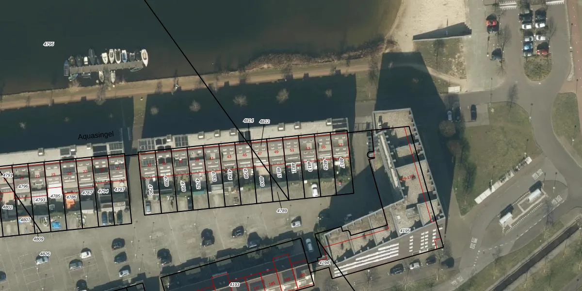Aquasingel 51 is gelegen op kadastraal perceel RML00I4811. Deze kadastrale aanduiding is uniek en wordt gebruikt door het Kadaster om eigendomsrechten en andere zakelijke rechten vast te leggen. Het perceel maakt onderdeel uit van de kadastrale gemeente Rosmalen.