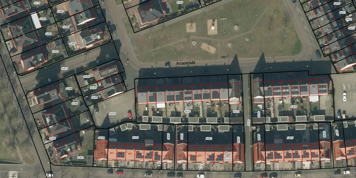 Het perceel waarop Ariastraat 17 staat heeft een oppervlakte van 1400 m². Dit is een zeer groot perceel. De perceeloppervlakte wordt geregistreerd door het Kadaster. Gedetailleerde informatie over de maten van dit perceel kunt u vinden in het rapport Kadastrale kaart met maatvoering van Ariastraat 17.
