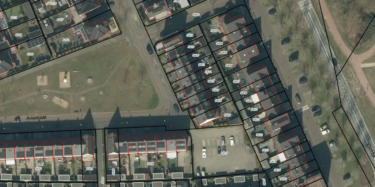 Het perceel waarop Ariastraat 53 staat heeft een oppervlakte van 145 m². Dit is een middelgroot perceel. De perceeloppervlakte wordt geregistreerd door het Kadaster. Gedetailleerde informatie over de maten van dit perceel kunt u vinden in het rapport Kadastrale kaart met maatvoering van Ariastraat 53.