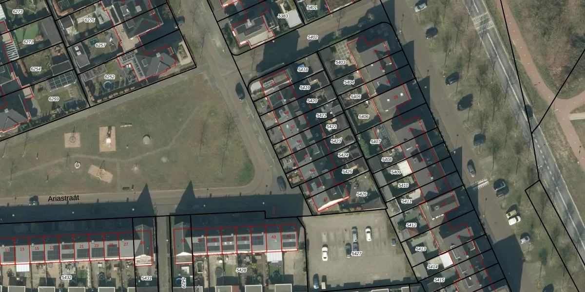Het perceel waarop Ariastraat 55 staat heeft een oppervlakte van 145 m². Dit is een middelgroot perceel. De perceeloppervlakte wordt geregistreerd door het Kadaster. Gedetailleerde informatie over de maten van dit perceel kunt u vinden in het rapport Kadastrale kaart met maatvoering van Ariastraat 55.