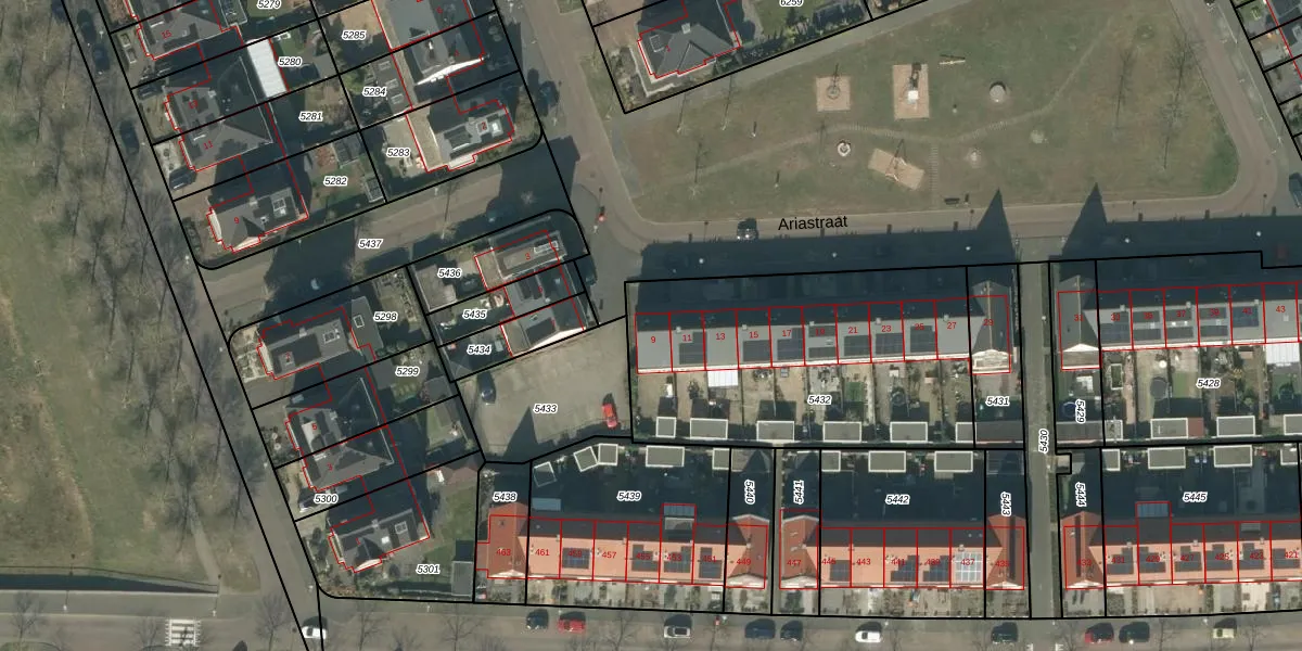 Het perceel waarop Ariastraat 9 staat heeft een oppervlakte van 1400 m². Dit is een zeer groot perceel. De perceeloppervlakte wordt geregistreerd door het Kadaster. Gedetailleerde informatie over de maten van dit perceel kunt u vinden in het rapport Kadastrale kaart met maatvoering van Ariastraat 9.