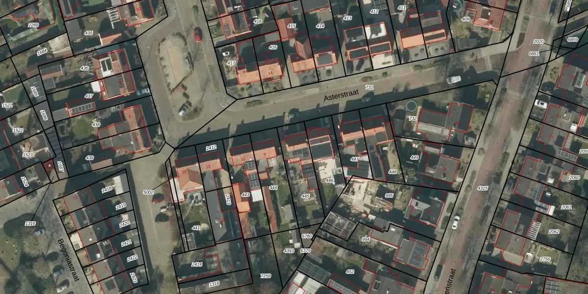 Gebruik de zoekbalk of klik op een perceel voor informatie over de adressen binnen dit perceel.