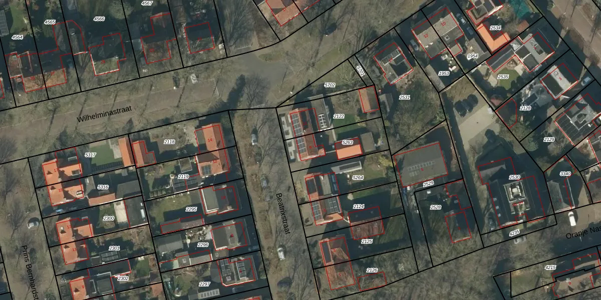 Het perceel waarop Beatrixstraat 9 staat heeft een oppervlakte van 376 m². Dit is een groot perceel. De perceeloppervlakte wordt geregistreerd door het Kadaster. Gedetailleerde informatie over de maten van dit perceel kunt u vinden in het rapport Kadastrale kaart met maatvoering van Beatrixstraat 9.