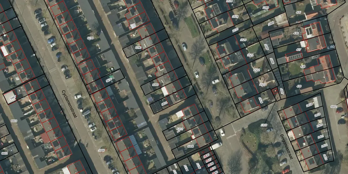 Het perceel waarop Begoniastraat 12 staat heeft een oppervlakte van 7429 m². Dit is een zeer groot perceel. De perceeloppervlakte wordt geregistreerd door het Kadaster. Gedetailleerde informatie over de maten van dit perceel kunt u vinden in het rapport Kadastrale kaart met maatvoering van Begoniastraat 12.