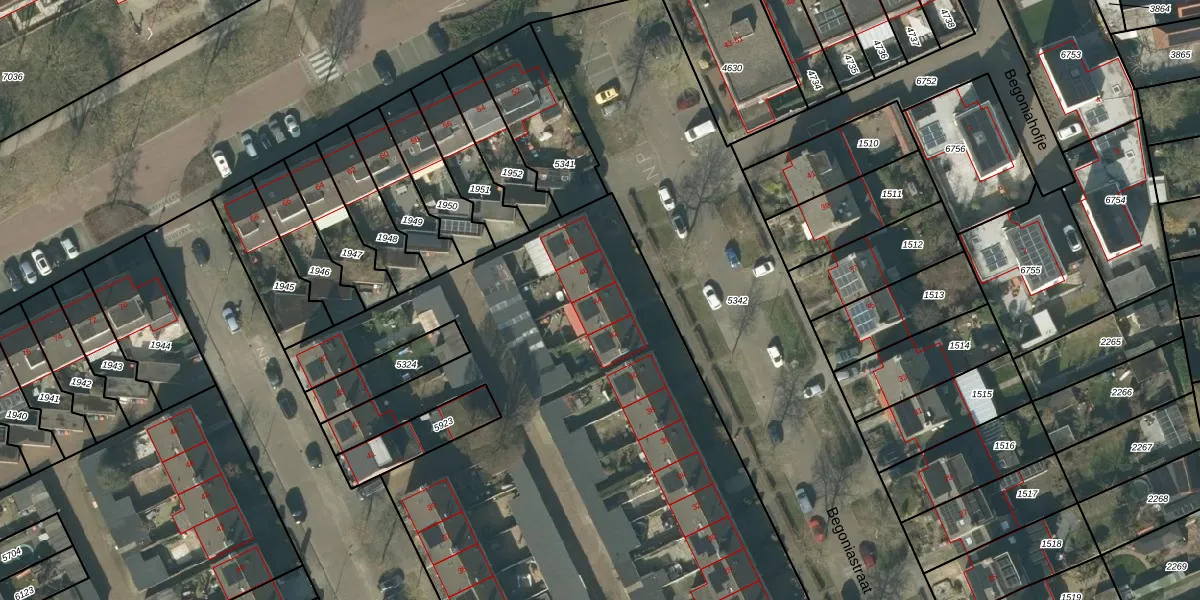 Het perceel waarop Begoniastraat 44 staat heeft een oppervlakte van 7429 m². Dit is een zeer groot perceel. De perceeloppervlakte wordt geregistreerd door het Kadaster. Gedetailleerde informatie over de maten van dit perceel kunt u vinden in het rapport Kadastrale kaart met maatvoering van Begoniastraat 44.