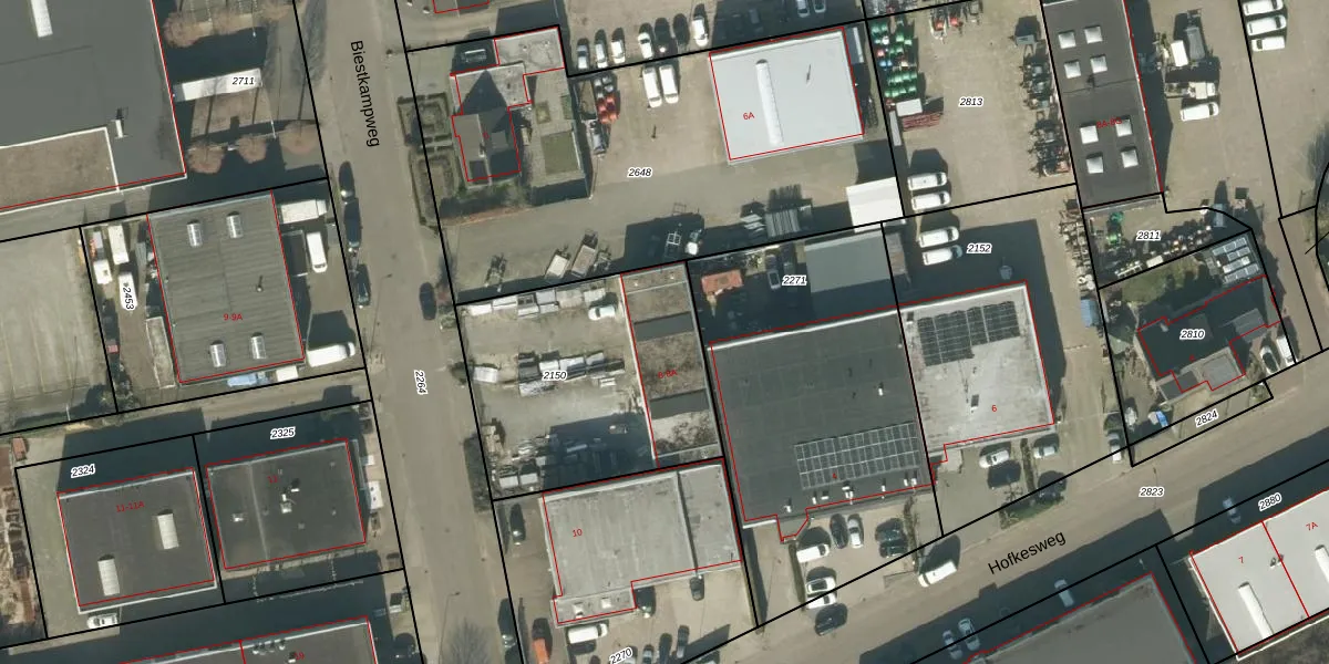 Het perceel waarop Biestkampweg 8 staat heeft een oppervlakte van 1065 m². Dit is een zeer groot perceel. De perceeloppervlakte wordt geregistreerd door het Kadaster. Gedetailleerde informatie over de maten van dit perceel kunt u vinden in het rapport Kadastrale kaart met maatvoering van Biestkampweg 8.