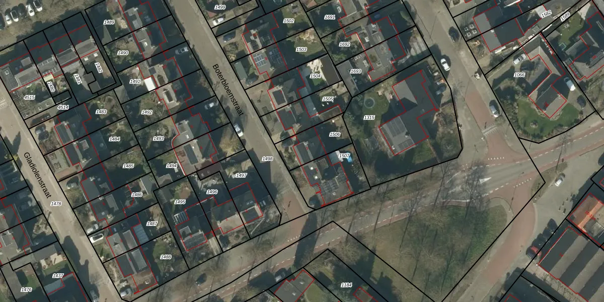 Gebruik de zoekbalk of klik op een perceel voor informatie over de adressen binnen dit perceel.