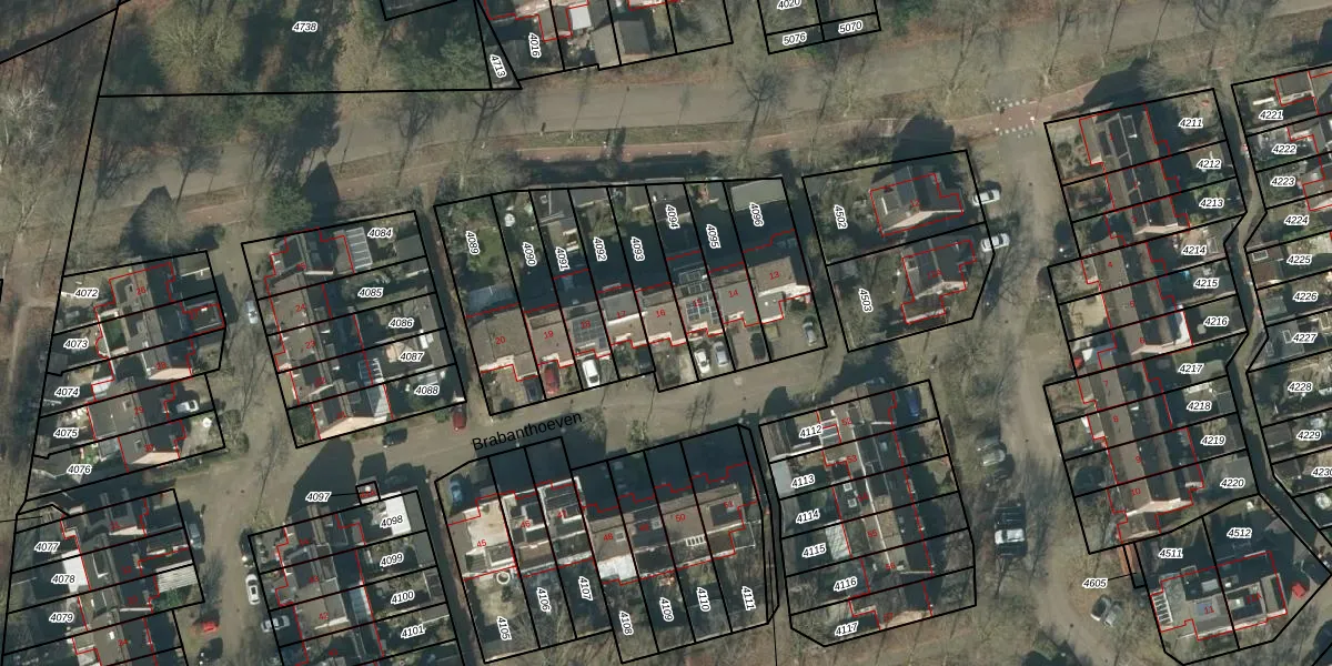 Het perceel waarop Brabanthoeven 16 staat heeft een oppervlakte van 179 m². Dit is een middelgroot perceel. De perceeloppervlakte wordt geregistreerd door het Kadaster. Gedetailleerde informatie over de maten van dit perceel kunt u vinden in het rapport Kadastrale kaart met maatvoering van Brabanthoeven 16.