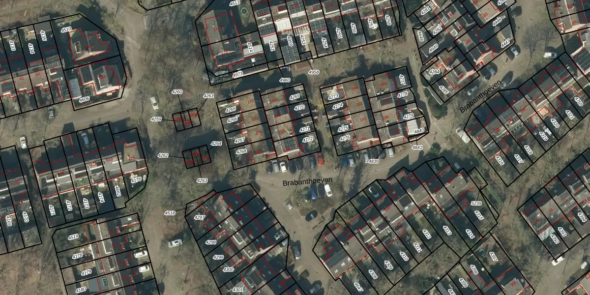 Het perceel waarop Brabanthoeven 168 staat heeft een oppervlakte van 102 m². Dit is een middelgroot perceel. De perceeloppervlakte wordt geregistreerd door het Kadaster. Gedetailleerde informatie over de maten van dit perceel kunt u vinden in het rapport Kadastrale kaart met maatvoering van Brabanthoeven 168.