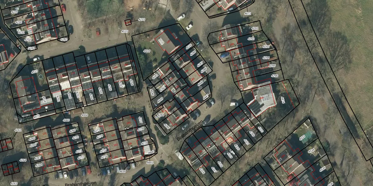 Het perceel waarop Brabanthoeven 186 staat heeft een oppervlakte van 100 m². Dit is een middelgroot perceel. De perceeloppervlakte wordt geregistreerd door het Kadaster. Gedetailleerde informatie over de maten van dit perceel kunt u vinden in het rapport Kadastrale kaart met maatvoering van Brabanthoeven 186.