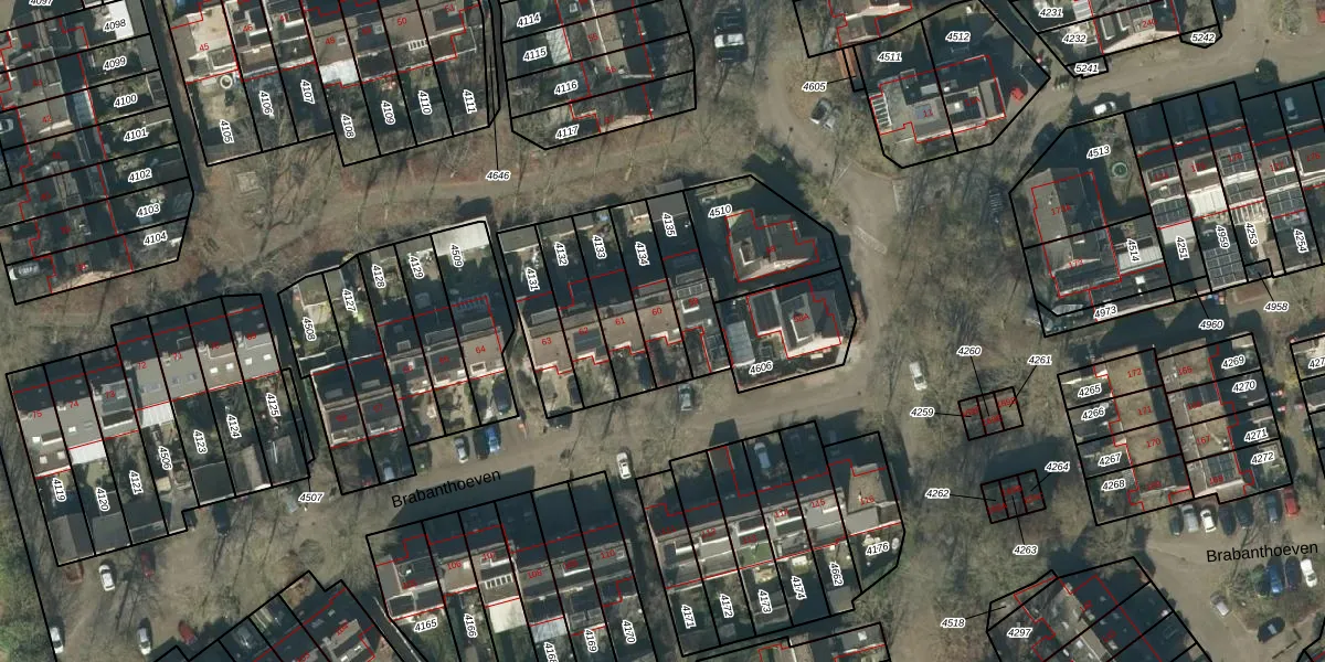 Het perceel waarop Brabanthoeven 60 staat heeft een oppervlakte van 161 m². Dit is een middelgroot perceel. De perceeloppervlakte wordt geregistreerd door het Kadaster. Gedetailleerde informatie over de maten van dit perceel kunt u vinden in het rapport Kadastrale kaart met maatvoering van Brabanthoeven 60.