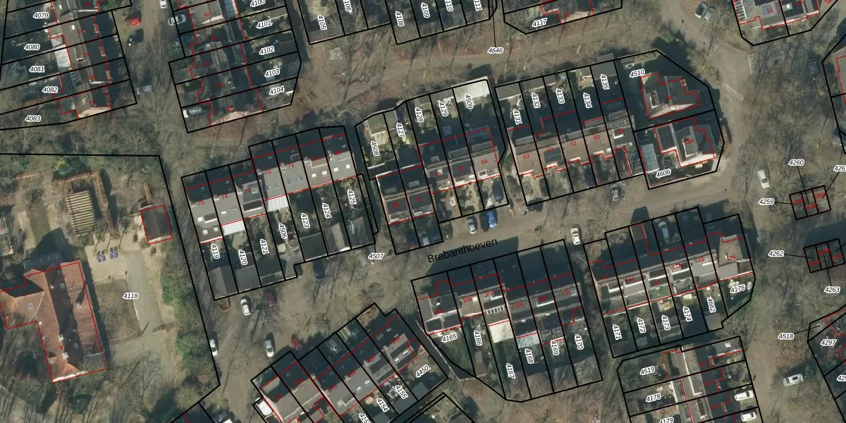 Het perceel waarop Brabanthoeven 67 staat heeft een oppervlakte van 191 m². Dit is een middelgroot perceel. De perceeloppervlakte wordt geregistreerd door het Kadaster. Gedetailleerde informatie over de maten van dit perceel kunt u vinden in het rapport Kadastrale kaart met maatvoering van Brabanthoeven 67.