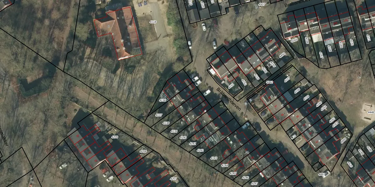 Het perceel waarop Brabanthoeven 77 staat heeft een oppervlakte van 190 m². Dit is een middelgroot perceel. De perceeloppervlakte wordt geregistreerd door het Kadaster. Gedetailleerde informatie over de maten van dit perceel kunt u vinden in het rapport Kadastrale kaart met maatvoering van Brabanthoeven 77.