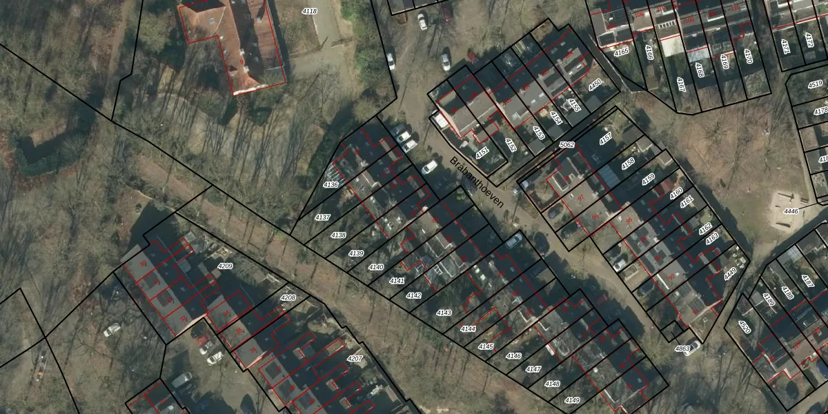 Het perceel waarop Brabanthoeven 79 staat heeft een oppervlakte van 171 m². Dit is een middelgroot perceel. De perceeloppervlakte wordt geregistreerd door het Kadaster. Gedetailleerde informatie over de maten van dit perceel kunt u vinden in het rapport Kadastrale kaart met maatvoering van Brabanthoeven 79.
