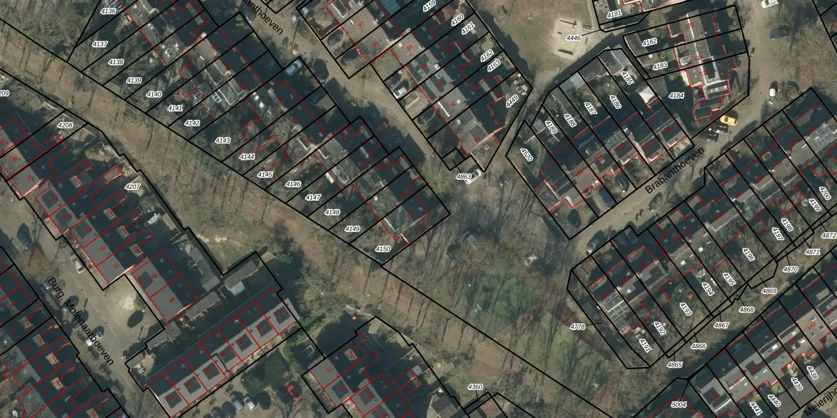 Het perceel waarop Brabanthoeven 90 staat heeft een oppervlakte van 195 m². Dit is een middelgroot perceel. De perceeloppervlakte wordt geregistreerd door het Kadaster. Gedetailleerde informatie over de maten van dit perceel kunt u vinden in het rapport Kadastrale kaart met maatvoering van Brabanthoeven 90.