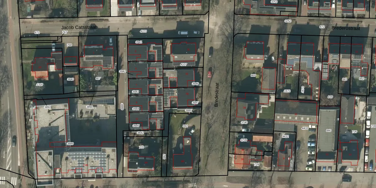 Het perceel waarop Bredestraat 35 staat heeft een oppervlakte van 215 m². Dit is een middelgroot perceel. De perceeloppervlakte wordt geregistreerd door het Kadaster. Gedetailleerde informatie over de maten van dit perceel kunt u vinden in het rapport Kadastrale kaart met maatvoering van Bredestraat 35.