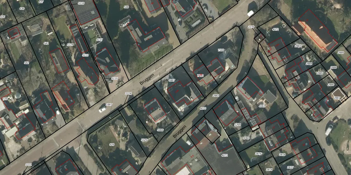 Het perceel waarop Bruggen 13-A staat heeft een oppervlakte van 470 m². Dit is een groot perceel. De perceeloppervlakte wordt geregistreerd door het Kadaster. Gedetailleerde informatie over de maten van dit perceel kunt u vinden in het rapport Kadastrale kaart met maatvoering van Bruggen 13-A.