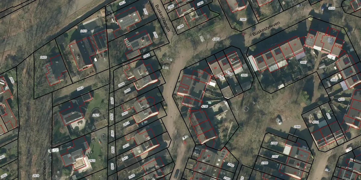 Het perceel waarop Buskeshoeven 10 staat heeft een oppervlakte van 1134 m². Dit is een zeer groot perceel. De perceeloppervlakte wordt geregistreerd door het Kadaster. Gedetailleerde informatie over de maten van dit perceel kunt u vinden in het rapport Kadastrale kaart met maatvoering van Buskeshoeven 10.