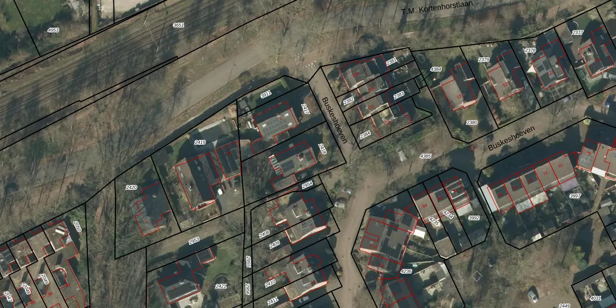 Het perceel waarop Buskeshoeven 3 staat heeft een oppervlakte van 480 m². Dit is een groot perceel. De perceeloppervlakte wordt geregistreerd door het Kadaster. Gedetailleerde informatie over de maten van dit perceel kunt u vinden in het rapport Kadastrale kaart met maatvoering van Buskeshoeven 3.