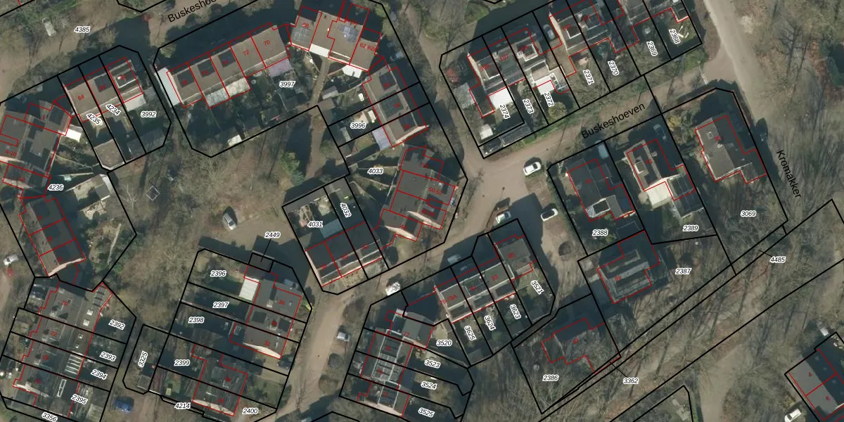 Het perceel waarop Buskeshoeven 48 staat heeft een oppervlakte van 740 m². Dit is een groot perceel. De perceeloppervlakte wordt geregistreerd door het Kadaster. Gedetailleerde informatie over de maten van dit perceel kunt u vinden in het rapport Kadastrale kaart met maatvoering van Buskeshoeven 48.