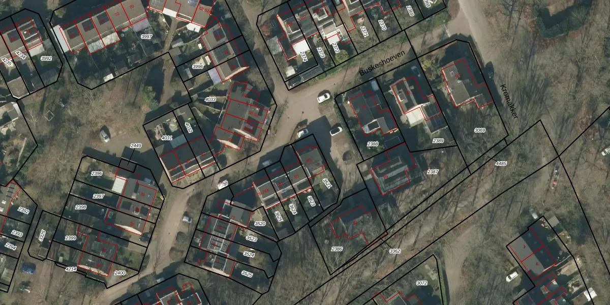 Het perceel waarop Buskeshoeven 85 staat heeft een oppervlakte van 184 m². Dit is een middelgroot perceel. De perceeloppervlakte wordt geregistreerd door het Kadaster. Gedetailleerde informatie over de maten van dit perceel kunt u vinden in het rapport Kadastrale kaart met maatvoering van Buskeshoeven 85.