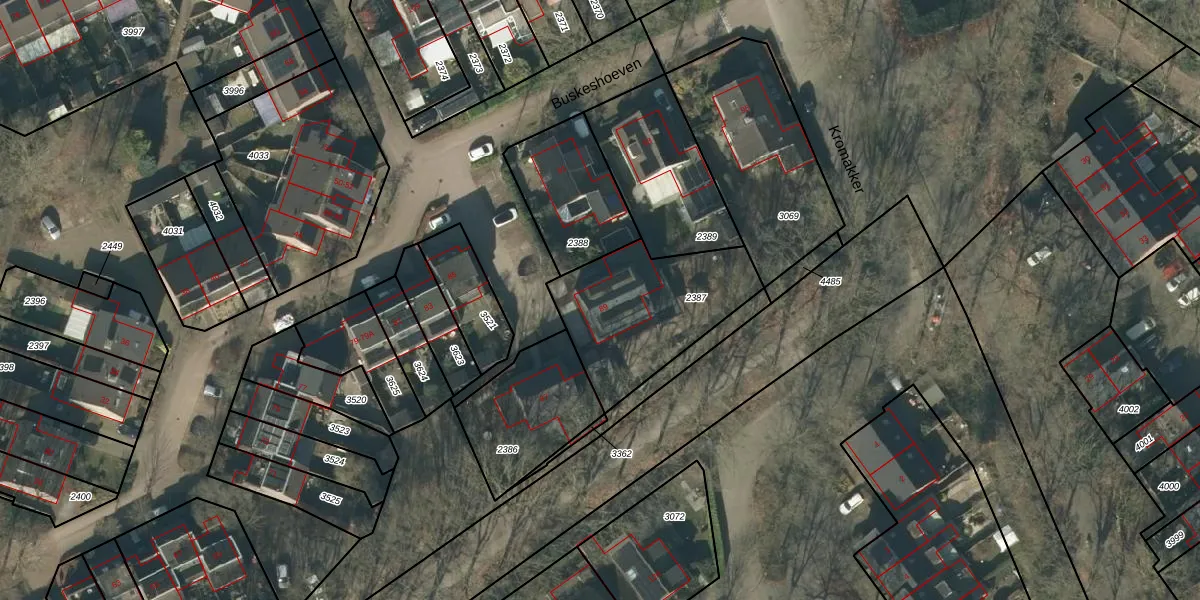 Het perceel waarop Buskeshoeven 89 staat heeft een oppervlakte van 560 m². Dit is een groot perceel. De perceeloppervlakte wordt geregistreerd door het Kadaster. Gedetailleerde informatie over de maten van dit perceel kunt u vinden in het rapport Kadastrale kaart met maatvoering van Buskeshoeven 89.
