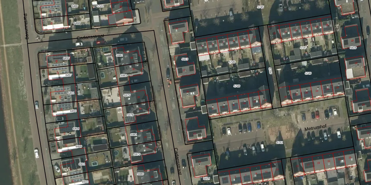 Het perceel waarop Cadansstraat 15 staat heeft een oppervlakte van 1010 m². Dit is een zeer groot perceel. De perceeloppervlakte wordt geregistreerd door het Kadaster. Gedetailleerde informatie over de maten van dit perceel kunt u vinden in het rapport Kadastrale kaart met maatvoering van Cadansstraat 15.