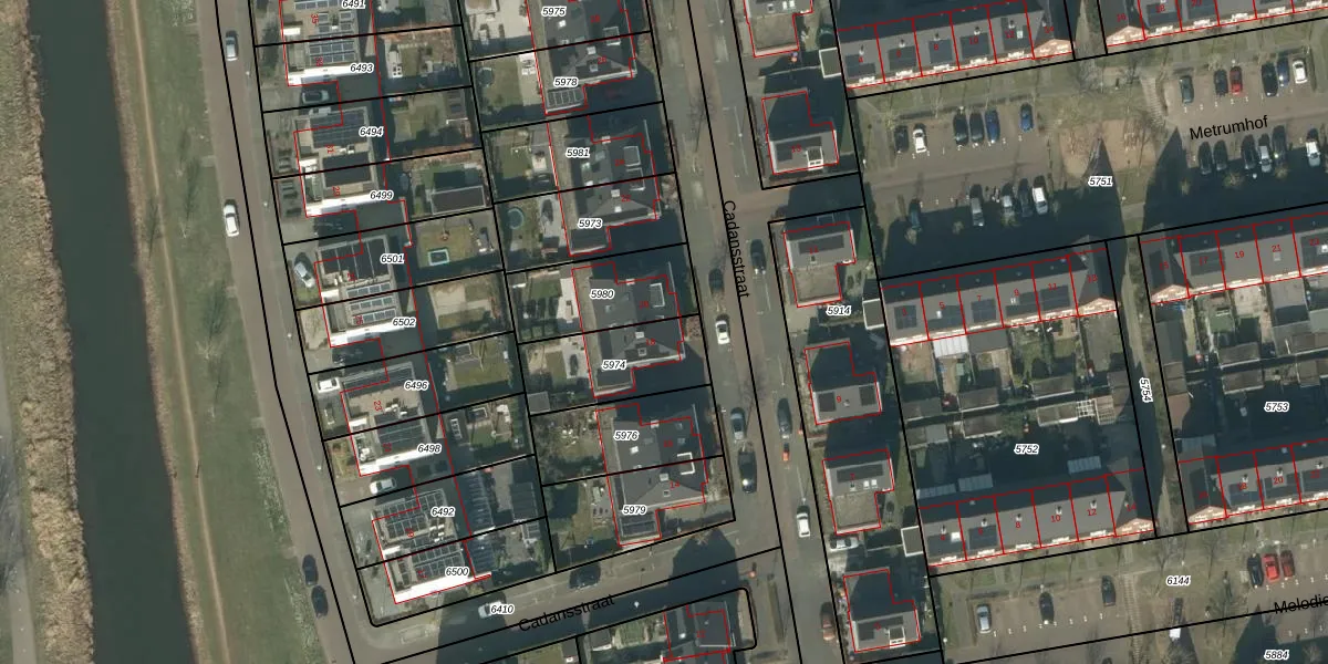 Het perceel waarop Cadansstraat 18 staat heeft een oppervlakte van 300 m². Dit is een groot perceel. De perceeloppervlakte wordt geregistreerd door het Kadaster. Gedetailleerde informatie over de maten van dit perceel kunt u vinden in het rapport Kadastrale kaart met maatvoering van Cadansstraat 18.