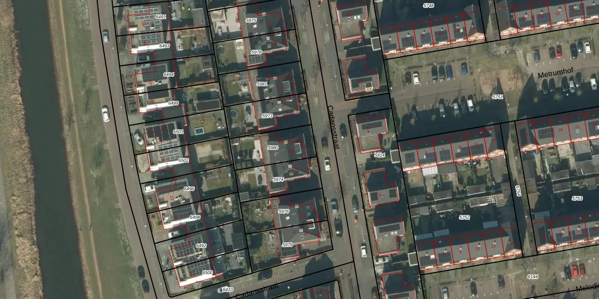 Het perceel waarop Cadansstraat 20 staat heeft een oppervlakte van 300 m². Dit is een groot perceel. De perceeloppervlakte wordt geregistreerd door het Kadaster. Gedetailleerde informatie over de maten van dit perceel kunt u vinden in het rapport Kadastrale kaart met maatvoering van Cadansstraat 20.