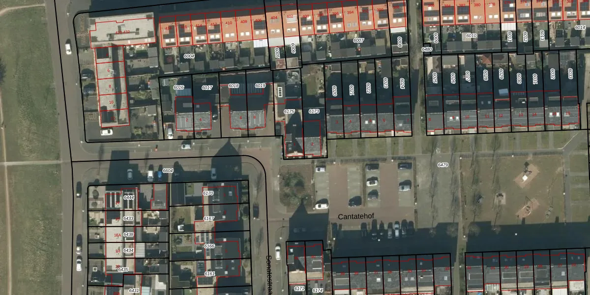 Cantatehof 1 is gelegen op kadastraal perceel RML00H6175. Deze kadastrale aanduiding is uniek en wordt gebruikt door het Kadaster om eigendomsrechten en andere zakelijke rechten vast te leggen. Het perceel maakt onderdeel uit van de kadastrale gemeente Rosmalen.
