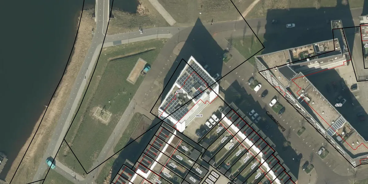 Cascadeweg 24 is gelegen op kadastraal perceel RML00I4859. Deze kadastrale aanduiding is uniek en wordt gebruikt door het Kadaster om eigendomsrechten en andere zakelijke rechten vast te leggen. Het perceel maakt onderdeel uit van de kadastrale gemeente Rosmalen.