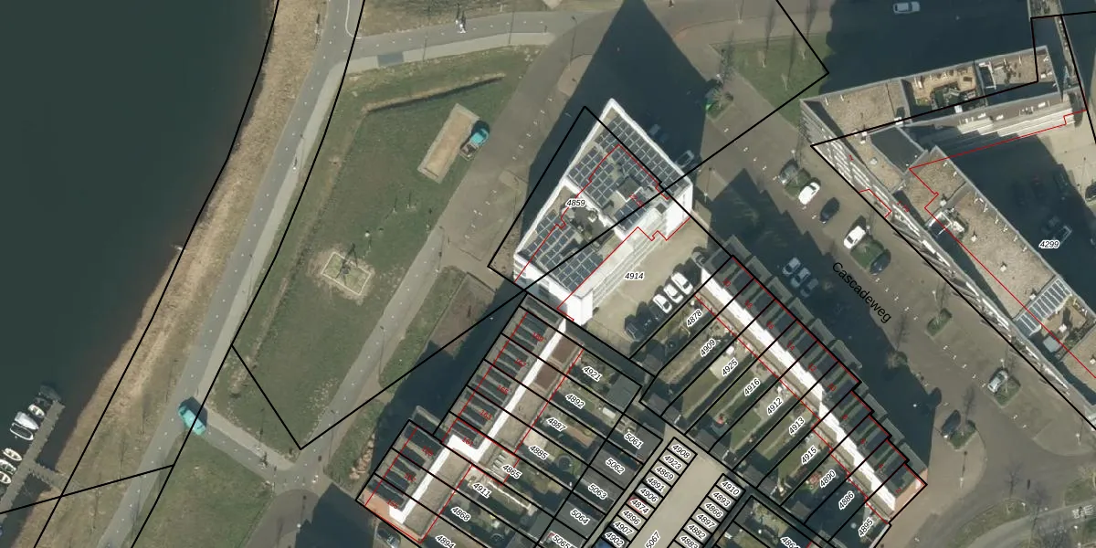 Cascadeweg 32 is gelegen op kadastraal perceel RML00I4914. Deze kadastrale aanduiding is uniek en wordt gebruikt door het Kadaster om eigendomsrechten en andere zakelijke rechten vast te leggen. Het perceel maakt onderdeel uit van de kadastrale gemeente Rosmalen.