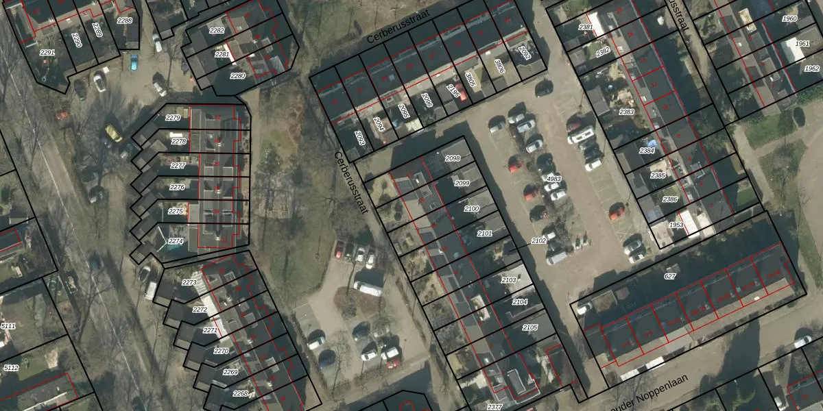 Het perceel waarop Cerberusstraat 15 staat heeft een oppervlakte van 178 m². Dit is een middelgroot perceel. De perceeloppervlakte wordt geregistreerd door het Kadaster. Gedetailleerde informatie over de maten van dit perceel kunt u vinden in het rapport Kadastrale kaart met maatvoering van Cerberusstraat 15.