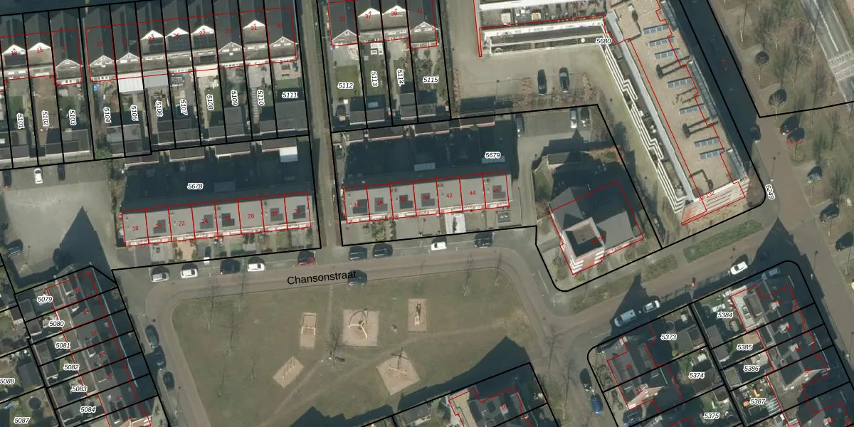 Het perceel waarop Chansonstraat 40 staat heeft een oppervlakte van 2142 m². Dit is een zeer groot perceel. De perceeloppervlakte wordt geregistreerd door het Kadaster. Gedetailleerde informatie over de maten van dit perceel kunt u vinden in het rapport Kadastrale kaart met maatvoering van Chansonstraat 40.