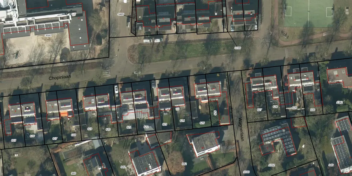 Het perceel waarop Chopinlaan 21 staat heeft een oppervlakte van 319 m². Dit is een groot perceel. De perceeloppervlakte wordt geregistreerd door het Kadaster. Gedetailleerde informatie over de maten van dit perceel kunt u vinden in het rapport Kadastrale kaart met maatvoering van Chopinlaan 21.