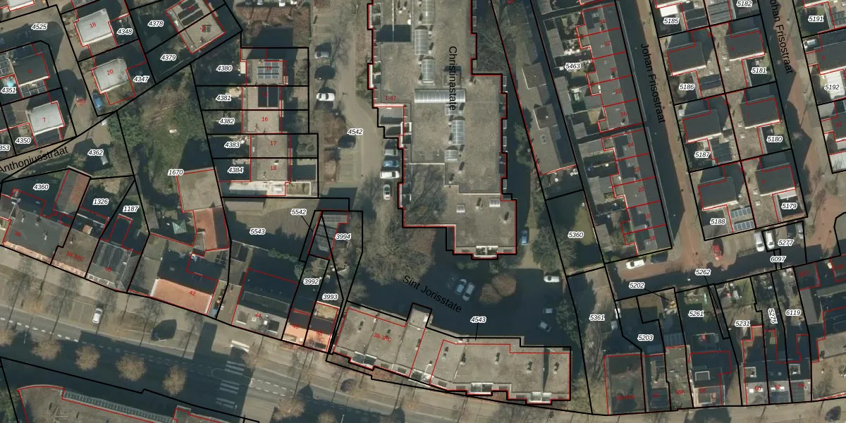 Het perceel waarop Christinastate 20 staat heeft een oppervlakte van 1842 m². Dit is een zeer groot perceel. De perceeloppervlakte wordt geregistreerd door het Kadaster. Gedetailleerde informatie over de maten van dit perceel kunt u vinden in het rapport Kadastrale kaart met maatvoering van Christinastate 20.