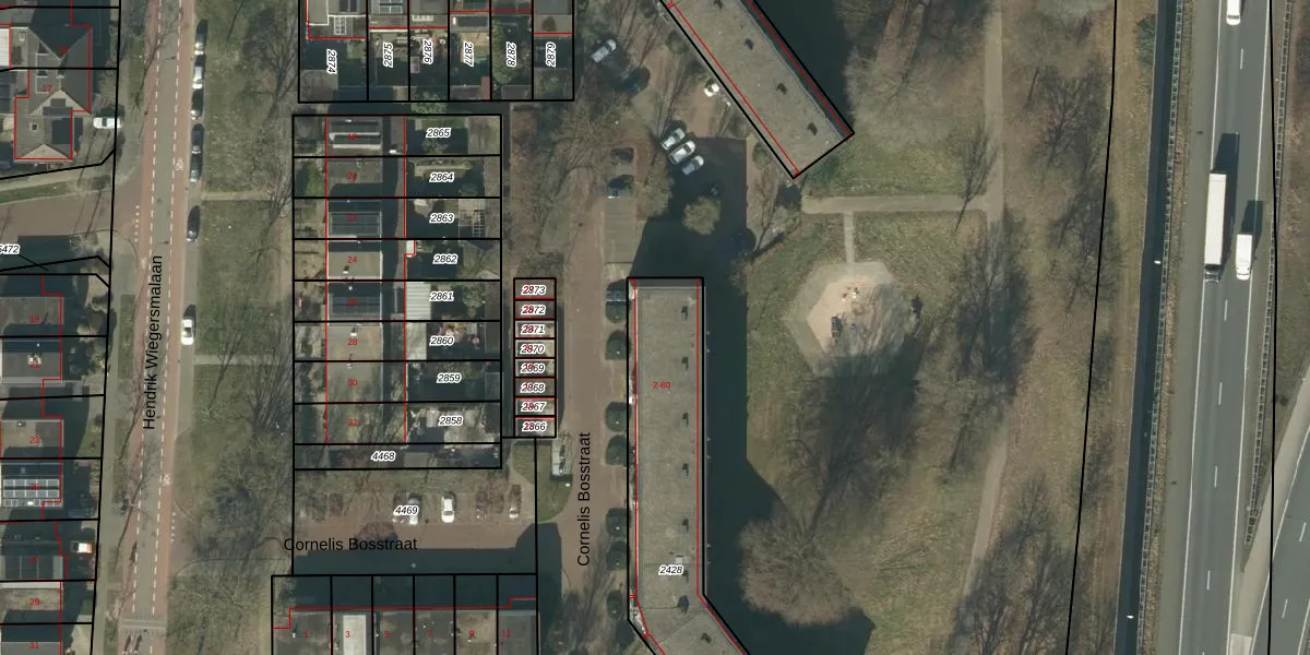 Het perceel waarop Cornelis Bosstraat 10 staat heeft een oppervlakte van 975 m². Dit is een groot perceel. De perceeloppervlakte wordt geregistreerd door het Kadaster. Gedetailleerde informatie over de maten van dit perceel kunt u vinden in het rapport Kadastrale kaart met maatvoering van Cornelis Bosstraat 10.