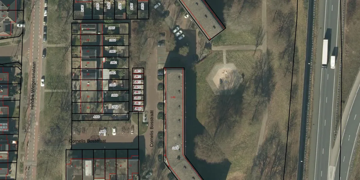 Het perceel waarop Cornelis Bosstraat 24 staat heeft een oppervlakte van 975 m². Dit is een groot perceel. De perceeloppervlakte wordt geregistreerd door het Kadaster. Gedetailleerde informatie over de maten van dit perceel kunt u vinden in het rapport Kadastrale kaart met maatvoering van Cornelis Bosstraat 24.