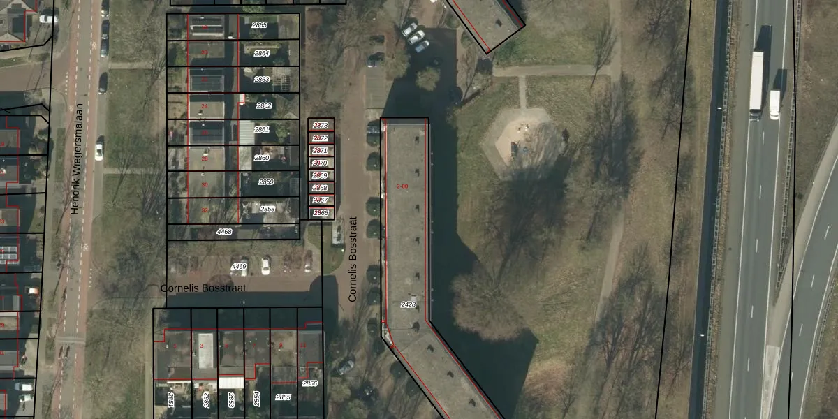 Het perceel waarop Cornelis Bosstraat 40 staat heeft een oppervlakte van 975 m². Dit is een groot perceel. De perceeloppervlakte wordt geregistreerd door het Kadaster. Gedetailleerde informatie over de maten van dit perceel kunt u vinden in het rapport Kadastrale kaart met maatvoering van Cornelis Bosstraat 40.