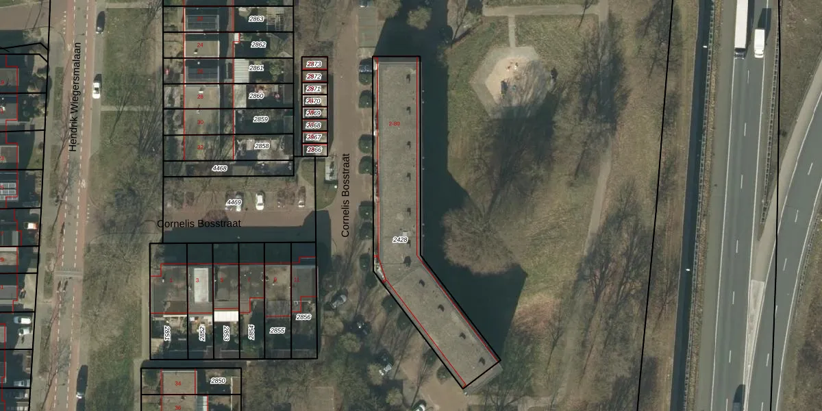 Het perceel waarop Cornelis Bosstraat 64 staat heeft een oppervlakte van 975 m². Dit is een groot perceel. De perceeloppervlakte wordt geregistreerd door het Kadaster. Gedetailleerde informatie over de maten van dit perceel kunt u vinden in het rapport Kadastrale kaart met maatvoering van Cornelis Bosstraat 64.