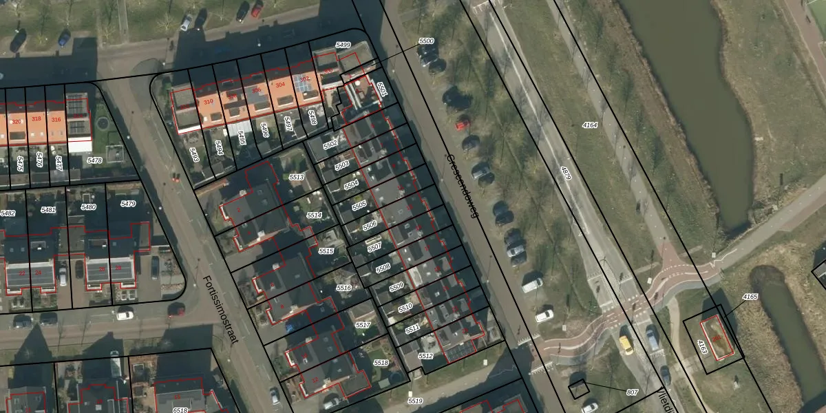 Gebruik de zoekbalk of klik op een perceel voor informatie over de adressen binnen dit perceel.